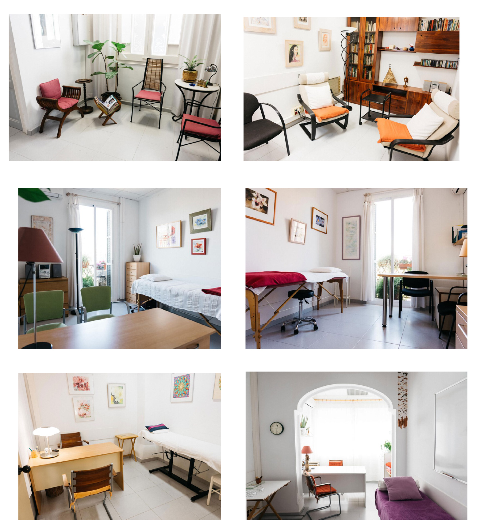 Cada sala cuenta con equipamiento de calidad, camillas, butacas, mesa de trabajo, wifi gratuito.