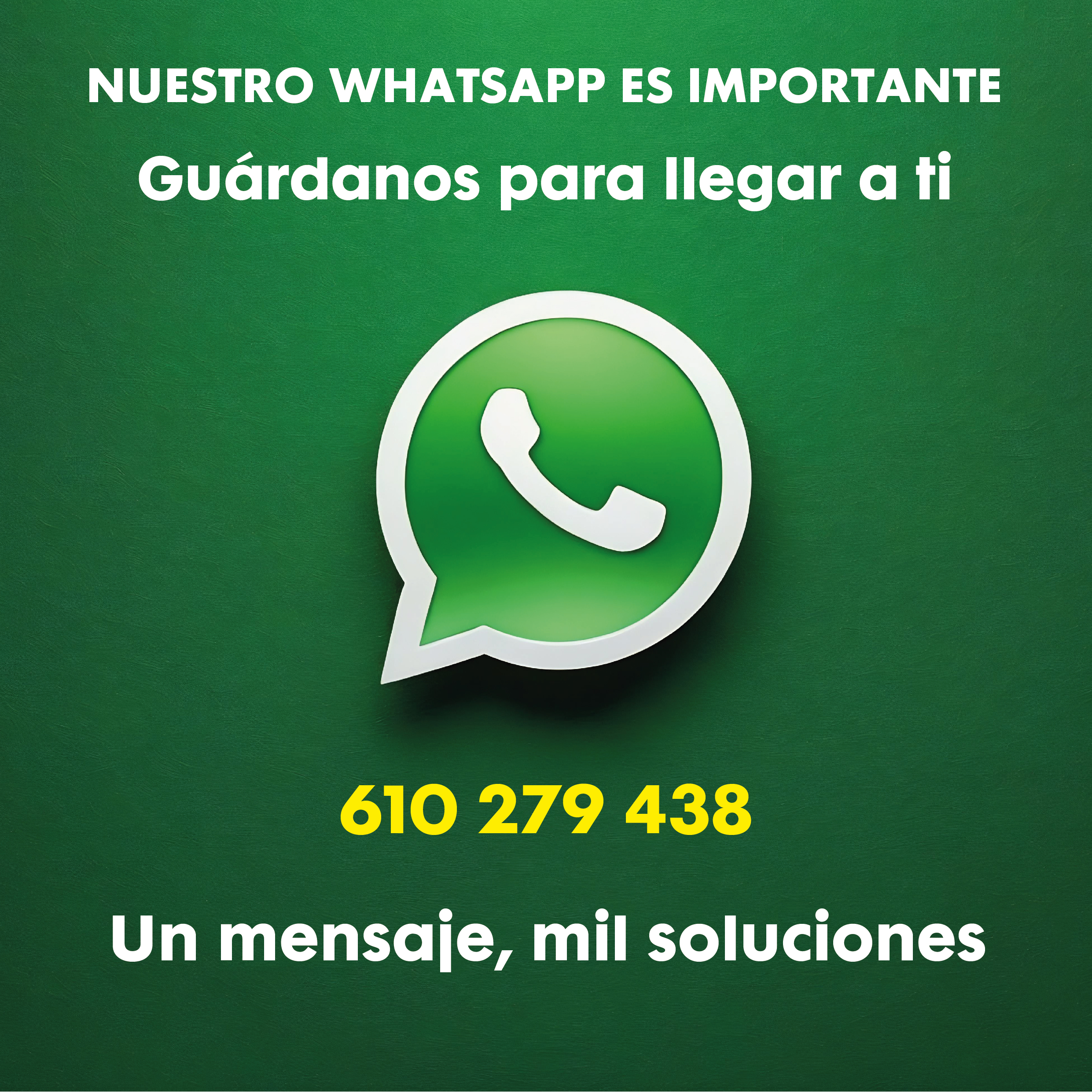 Recordarte que una de nuestras vías más importantes de comunicarnos contigo es este número de teléfono 610 279 438.
